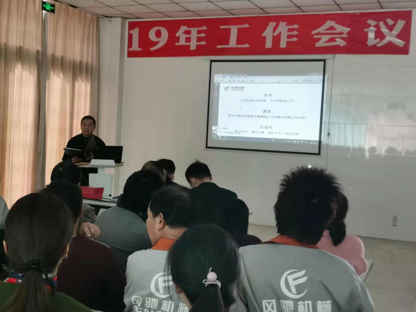 會議由風(fēng)馳車輪公司副總經(jīng)理陳景賢主持,總經(jīng)理李正華總結(jié)了2018年的工作,部署2019的任務(wù)。李總在會上提到在美國發(fā)起貿(mào)易戰(zhàn),經(jīng)濟(jì)下行壓力增大的嚴(yán)峻形勢下,車輪公司經(jīng)過全體員工的共同努力,取得銷售增長二成的好業(yè)績,開發(fā)了鋁輪和工程圈兩項(xiàng)新產(chǎn)品,為今明兩年的發(fā)展打下扎實(shí)的基礎(chǔ)。2019年,我們更要凝心聚力,乘勝前進(jìn),出色完成“營業(yè)收入2500萬元,利潤指標(biāo)9%,每萬元產(chǎn)值工資含量不超過14.5%,客戶投訴少于15起,有等級的工傷事故0起”的年度計劃目標(biāo),以此來感謝總公司的扶持和關(guān)懷。